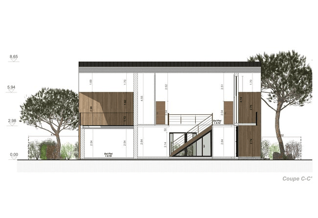 Mova a linha de corte diretamente na sua planta baixa e confirme para criar uma planta de corte transversal arquitetura automaticamente.