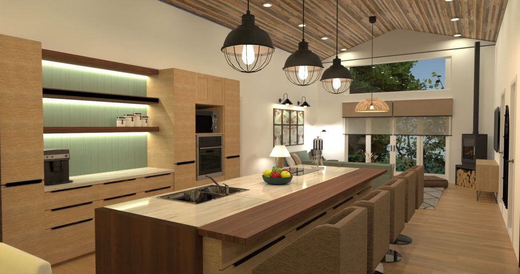 - Design library with 1,000s of objects, including kitchen islands, and cabinets