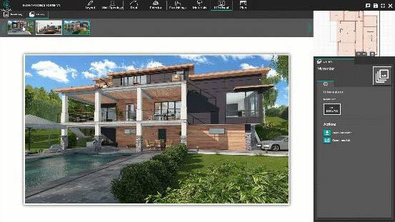 Un point de vue correspond au positionnement de la caméra 3D. Après avoir trouvé l’angle de vue idéal pour générer un nouveau rendu HD, vous pourrez sauvegarder votre point de vue, c’est à dire, la vue exacte qui apparaîtra en 3D sur l’espace de travail.