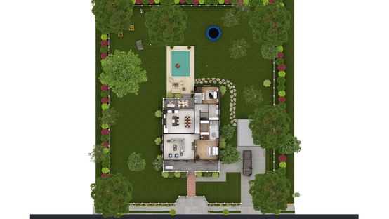 Un plan 3D Cedreo peut également inclure les détails de l’aménagement extérieur du projet. Proposez un plan complet avec terrasse, piscine, et aménagement paysager en 3D.