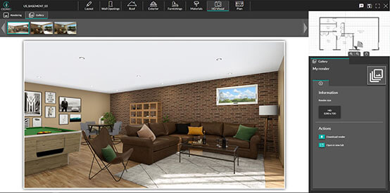 Download the 3D renderings and scaled floor plans, and watch your clients’ faces light up as they see their finished basement design come to life. After saving money by skipping the 3D design firm, you get to save time by delivering a stunning basement design that meets every expectation.