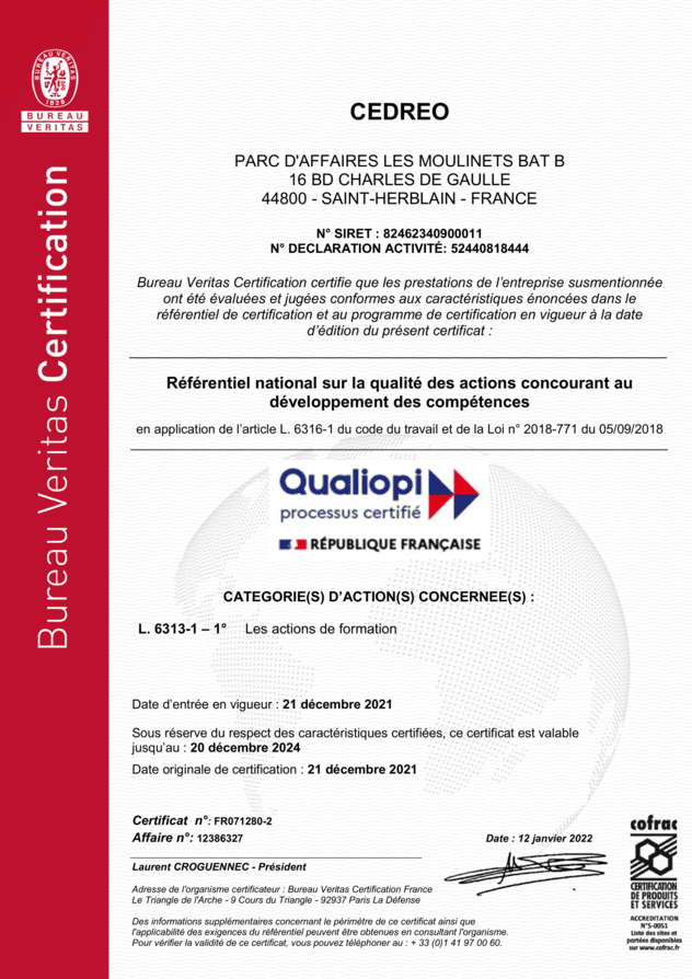 - Avoir un niveau homogène avec l’ensemble des stagiaires sur Cedreo.